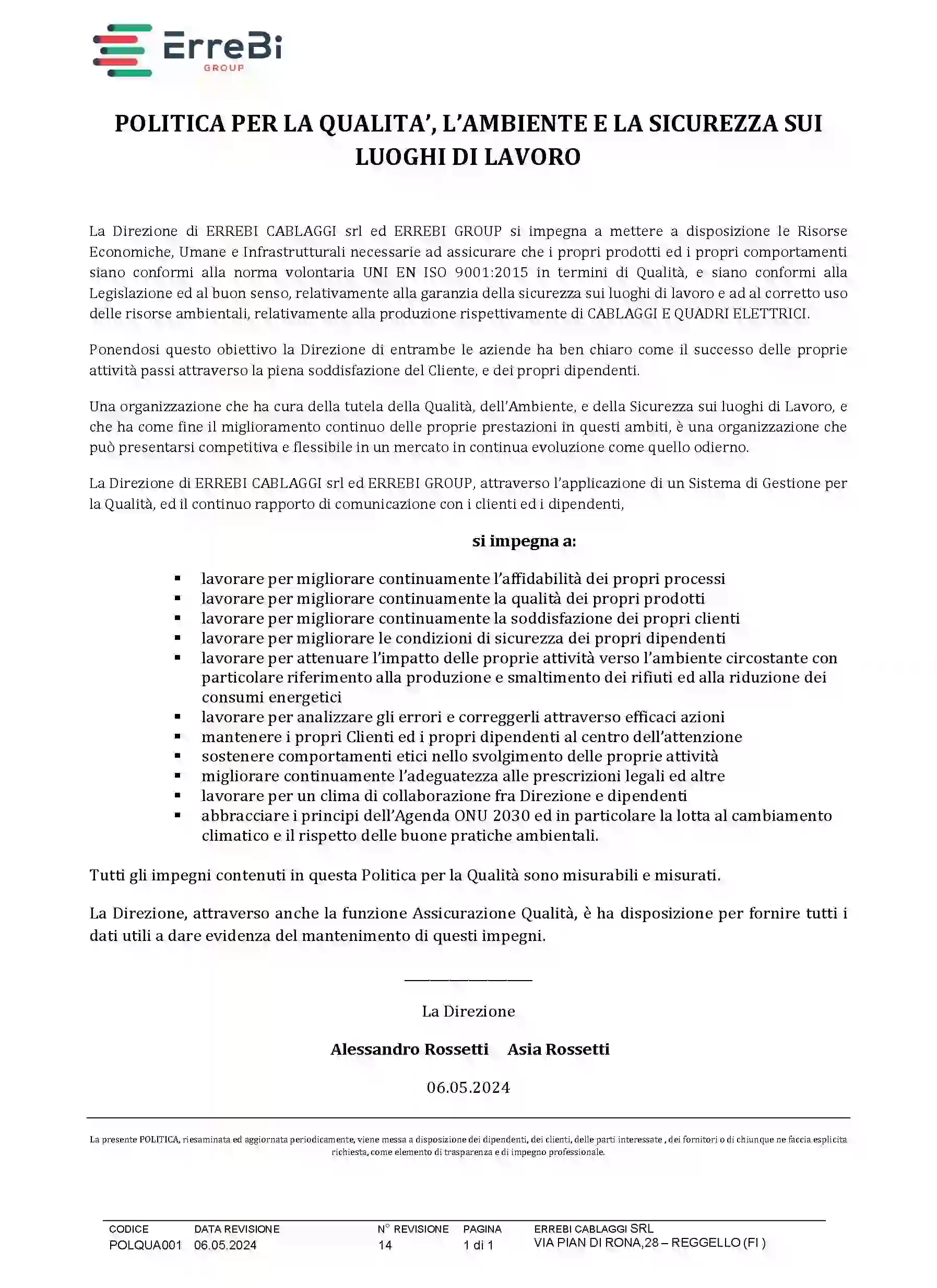 Quality policy ErreBi Group and ErreBi Cabling